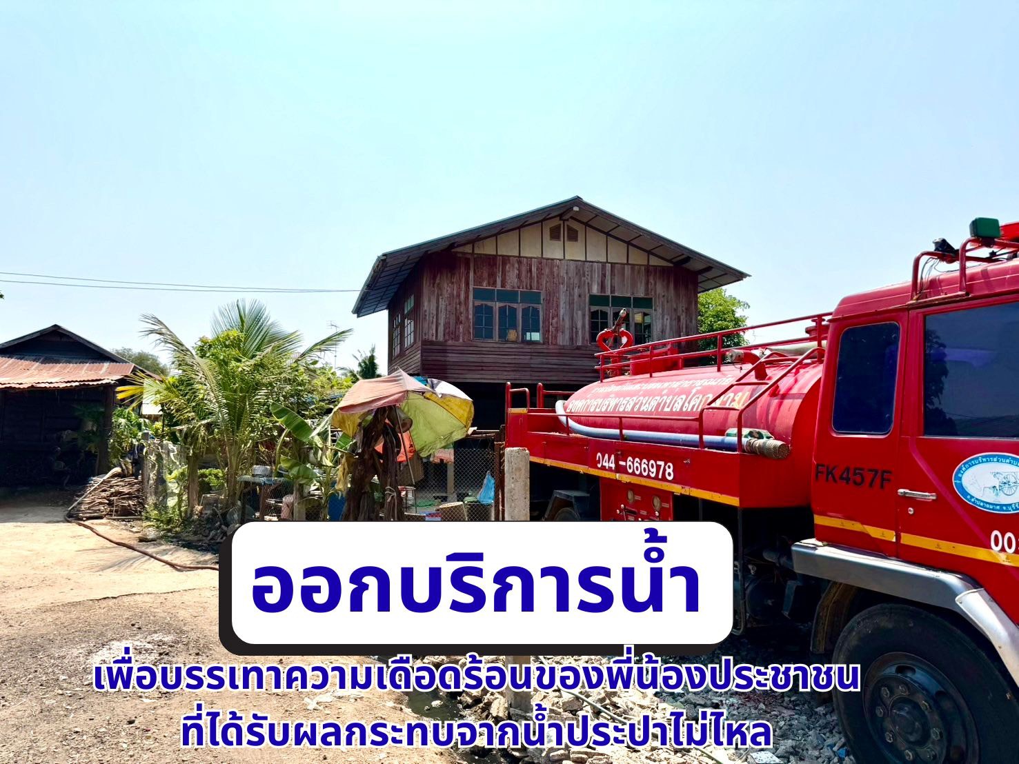 วันที่ 3 เมษายน 2569 เวลา 13.00 น. เจ้าหน้าที่งานป้องกันและบรรเทาสาธารณภัย องค์การบริหารส่วนตำบลโคกล่ามลงพื้นที่ให้ความช่วยเหลือประชาชนูในเขตพืนที่รับผิดชองโดยได้ดำเนินการจัดส่งและฉีดพุ่นน้ำสำหรับอุปโภคให้แก่พีน้องประชาชนบ้านโนนแดง หมู่ที่ 9 รวมทั้งสิ้น 11 หลังคาเรือน เพื่อแก้ไขปัญหาการขาดแคลนน่าและบรรเทาความเดือดร้อนในเบืองต้น"