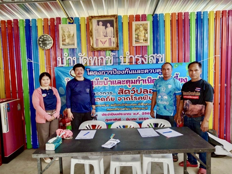 วันที่ 4 มีนาคม พ.ศ 2569 เวลา 09.00 น. เจ้าหน้าที่องค์การบริหารส่วนตำบลโคกล่าม ลงพื้นที่สำรวจการขึ้นทะเบียนสุนัข - แมว เพื่อดำเนินการให้บริการฉีดวัคซีนป้องกันโรคพิษสุนัขบ้าให้กับสุนัขและแมวในพื้นที่ตำบลโคกล่ามตามโครงการสัตว์ปลอดโรคคนปลอดภัยจากโรคพิษสุนัขบ้า ประจำปีงบประมาณ 2569 ในวันที่ 4 มีนาคม พ.ศ 2569 ณ ที่ทำการผู้ใหญ่บ้านใหม่สามัคคี ม.5 ตำบลโคกล่าม อำเภอลำปลายมาศ จังหวัดบุรีรัมย์